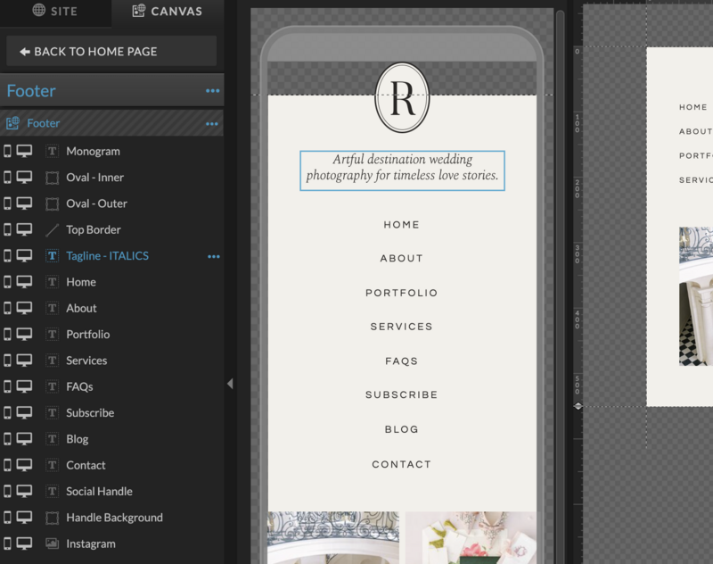 Your Footer Tagline is intentionally set to use the Italic version of your Title font. ***This is different from selecting the standard version of the font and then highlighting the text to Italicize it within the text box.***** This serves as a reference point to use Italics in this font throughout your site, in the same text box as non-Italics.